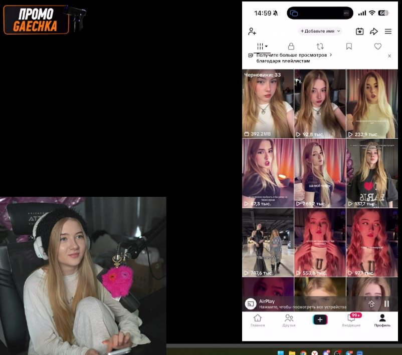 гаечка сказала у нее самые ахуенные тиктоки и она к ним долго готовится и в них много смысла в отличие "от других"