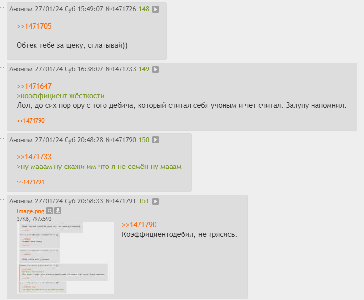 >>1471733 > Залупу напомнил. Скорее норкочуха. Такой же тупорылый баран, без элементарных знаний логики и школьной физики, но при этом пытающийся что-то доказывать. С коэффициентом смешно тогда было, как и у норкочуха с его "алюминий х6 весит как карбон".