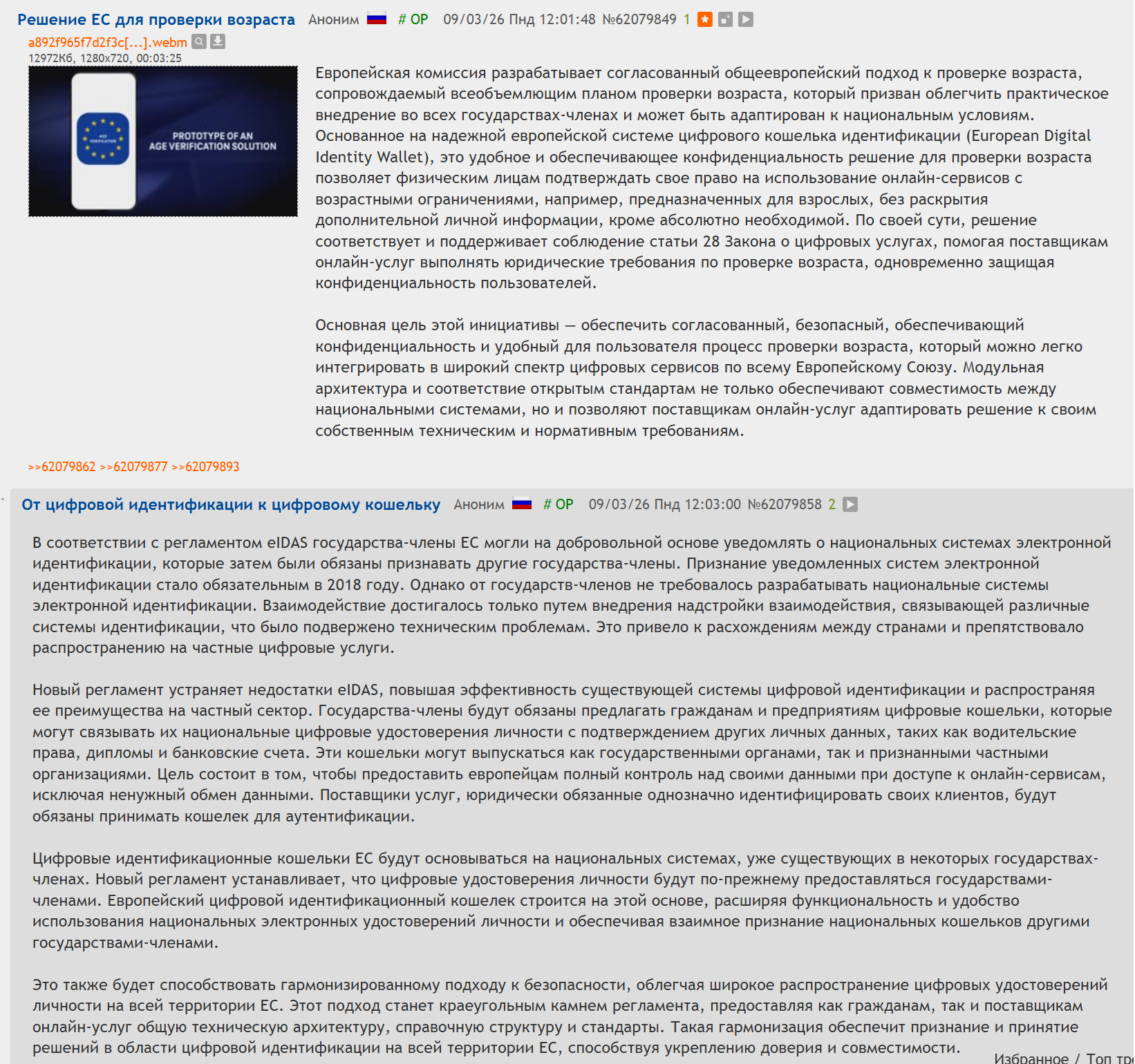 Так вот, я понять не мог - "а какого хуйя?". А сейчас эти базовички начинают нормализацию Digital ID. Говорят, что это неизбежно, что детишек надо защищать от груимнга, что компании не виноваты... Т.е. они просто приманили чедов и сейчас будут им срать в голову необходимостью Digital ID. Ебучие блогеры. Говорили на дваче же, что все блогеры - долбаёбы. Чё я их не слушал? Вот н-р видос и сразу реакция на него. https://youtu.be/jhmt9Mt5jXk (This is genuinely terrifying.. Asmongold TV. 8 mar 2026) Ещё, хз что такое груминг. Когда я ебал мать школьника-пуджа на миде это груминг?