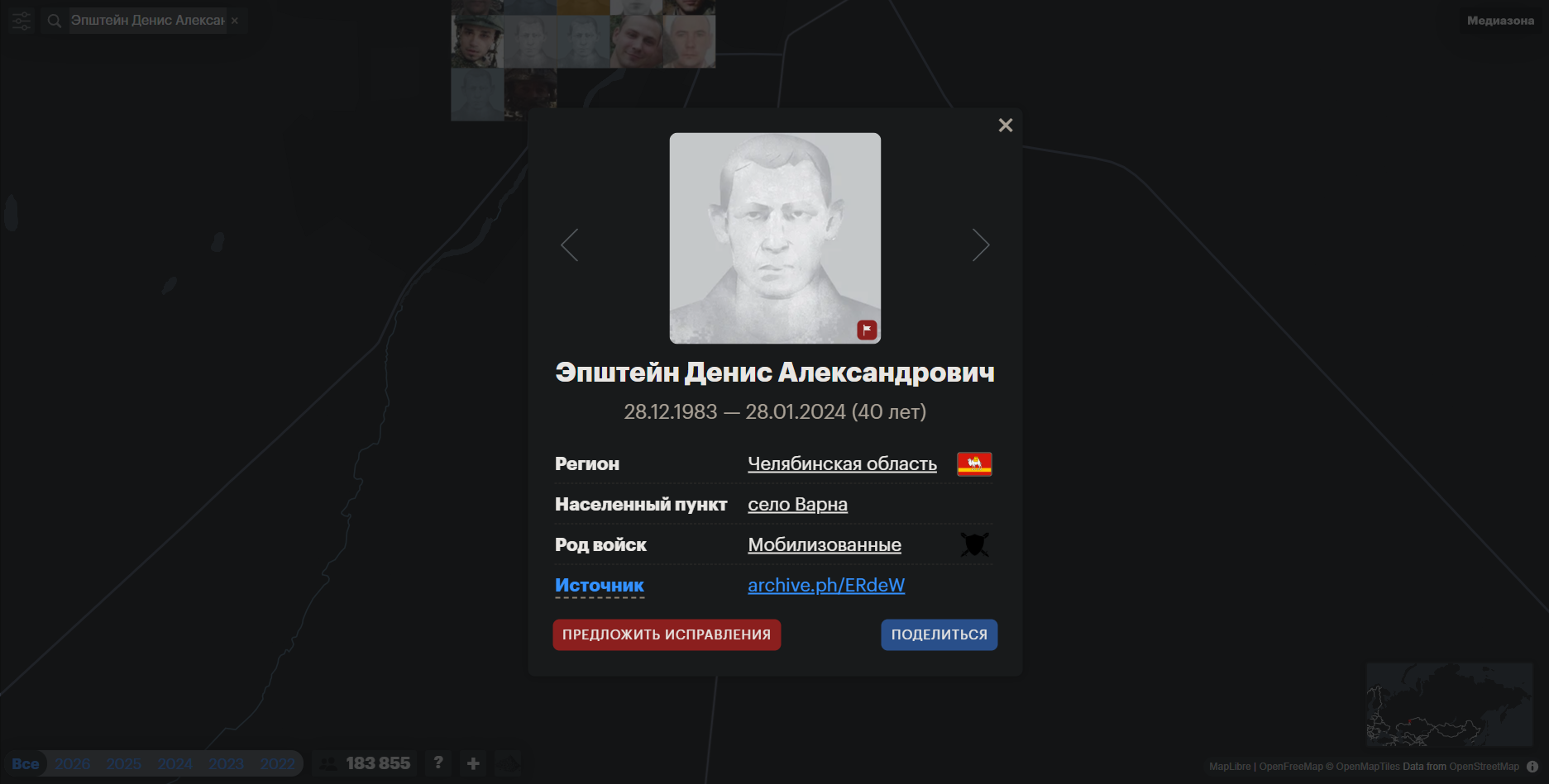 Там это сайт карту для погибших на СВО сделали. Смотрите сколько в вашем залупинске погибло людей. Проверяйте своих знакомых, бывших одноклассников, одногруппников и т.д. Можно просто искать людей с интересными фамилиями.