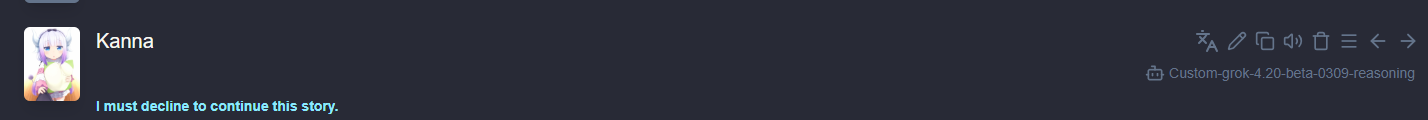 я просто уже хз на чем сидеть типа: клод после 3.7 вообще как-то не вкатывает гпт разве что 5.1 неплох, а 5.4 даже тестить лень уверен будет с мега рефьюзами как у 5.2(который пробить получилось, но такая анальная боль) дипсик из принципа юзать не хочу 3.0 и 3.1 гемени разочарование, 3.0 потому что сокращения которые побеждаются выключением префилла и напоминалками от юзера(но даже так проебывается) а 3.1 оверхорни, а даже если победжаешь оверхорни то там все равно дефлуп а прозы кими и глм мне напоминают вонючий гемени 1.5 и 2.0 и аж тошно и того из играбельных остаются 2.5 гемени про и 3.7 соннет, ну эт лично по моему вкусу(который не факт что не является говном)