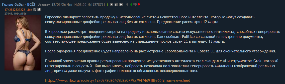 Ну и ещё как мысль - это заблокировали возможно и потому что грок такой пост может определить как сгенерированный а значит и уровень цензуры опустить до уровня загруженных. Это домыслы и догадки. А как проверить я не знаю