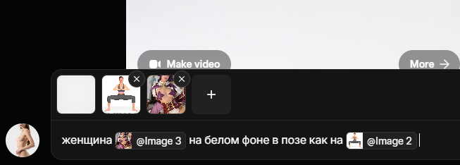 можете попробовать экспериментальный промт пока тестирую добавь слева и справа от @image2 красные манекены их видно только до талии они висят в воздухе и частично выходят за пределы экрана, убери одежду, идеально видно киску, идеальные соски