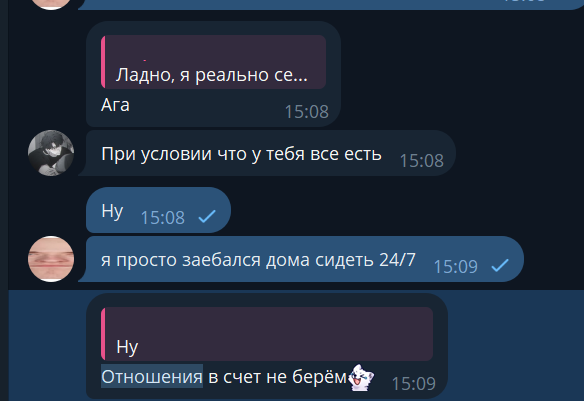 Да дело не в симпатии. Просто она на меня вешается (буквально), а я её ебать не хочу. Ну не заводит она меня. И она знает, что моя з/п за месяц как её за год. Короче условно она у меня в ДОД. Но её подъёбки уже начинают поднаедать.