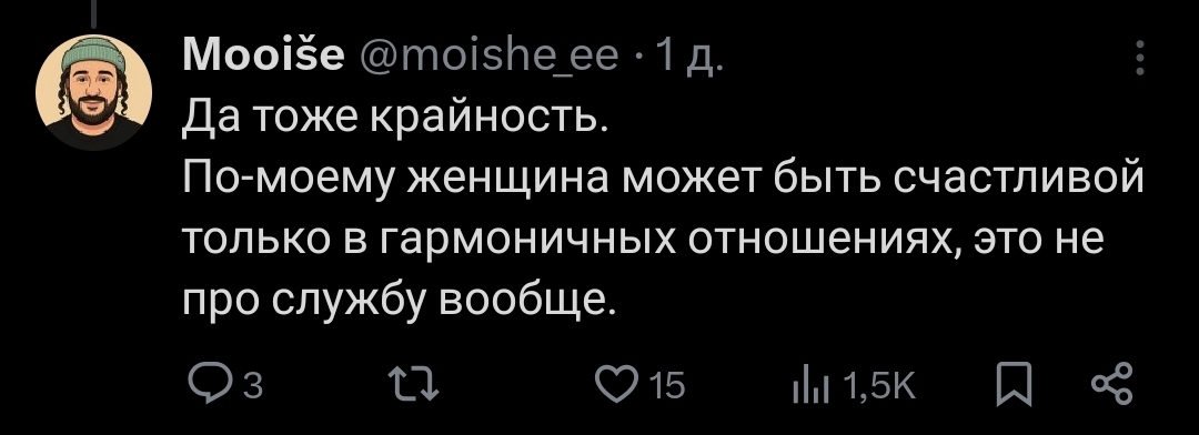 Я немного не то имела в виду. Понятное дело, что у большинства людей нет карьеры. А у того меньшинства, что есть, работа редко имеет какой-то смысл кроме заработать больше денег для капиталиста. Хорошо, если это хотя бы объективно не вредит. В целом все мы в основном ординарные люди и от нашего отсутствия в мире ничего не поменяется.