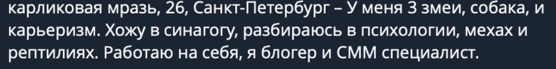 Рост 172 сантиметра, работаю инженером-проектировщиком, зарплата 60 т.р. в месяц. Эрудированный, чистоплотный, весёлый, готовлю сам, уборку делаю тоже сам, живу в своей квартире (сталинка, двушка, ремонт тот самый "косметический"), увлекаюсь выживанием (в России без этого никуда), аниме и выращиваю розы. Возраст за +30, не бухаю, на наркотиках не сижу, на сигаретах и хуях тоже, судимостей нет, кредитов тоже нет, все конечности на месте, татуировок нет, есть шрамы, здоровье уральское, люблю покушать, за фигурой не слежу, но и не жиробас. Преданный и принципиальный, трудностей не боюсь, но и не стремлюсь к проблемам. Если тянка, хотя бы, на 9/10, то готов пойти в спортзал и "закрепить" фигуру, если ей это принципиально. Ищу умную, заботливую и любящую девушку, которая не врет, не изменяет, готовит дома, следит за здоровьем, работает на приличной официальной работе, не в эскорте и не на онлифансе. Интересует возраст от 20 до 26 лет, без судимостей, без кредитов, без наколок, не курящая, не пьющая, из нормальной семьи, тип личности ближе к интроверту.