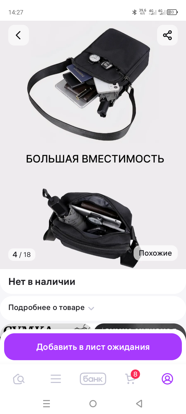 Ношу пикрелейтед. Помещается в теории телефон, кабель зарядки, ключи, паспорт, наличка, бонусом идет отстегивающийся кардхолдер. Но я ношу по маршруту дом-машина-дом, телефон в кармане, кардхолдер в кармане, ключи там же, т.е. по сути, это чехол для паспорта и стски.