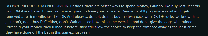 >«Сделайте так, чтобы игра провалилась, чтобы мы никогда больше не получили ни одной игры из этой серии и потом жаловались, что нам больше никогда не выпустят ни одной игры из этой серии 😎 »
