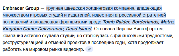 Ну и в качестве вишенки на торте - то, о чём я и говорю >Сотрудникам иногда приходилось работать по 70-80 часов в неделю >Переработки во многом были связаны с давлением Square Enix, которая ставила жёсткие сроки и старалась как можно сильнее сократить бюджет >Работники жаловались на низкие зарплаты, трудности с карьерным ростом и бездействие руководства в отношении случаев токсичного поведения >Сотрудники Deck Nine винили в сложившейся ситуации руководителей самой студии