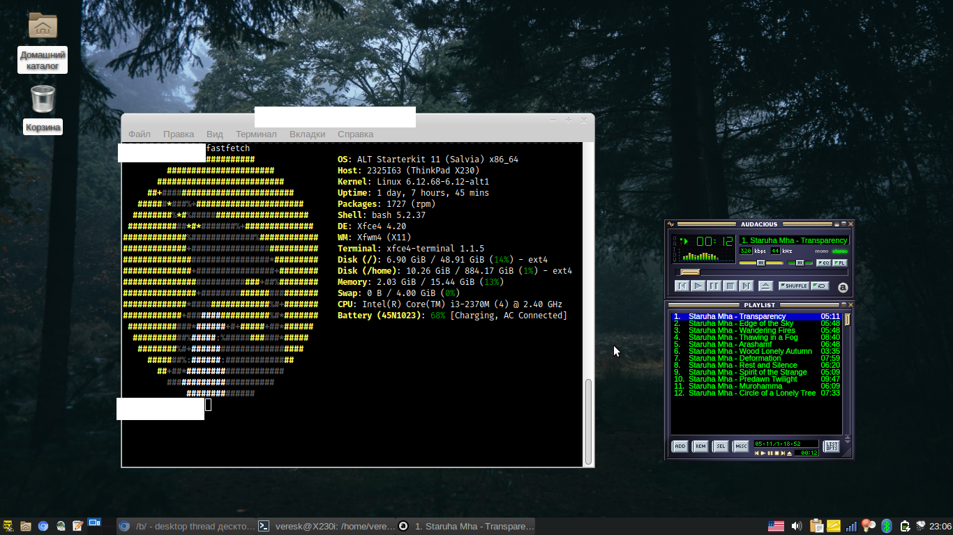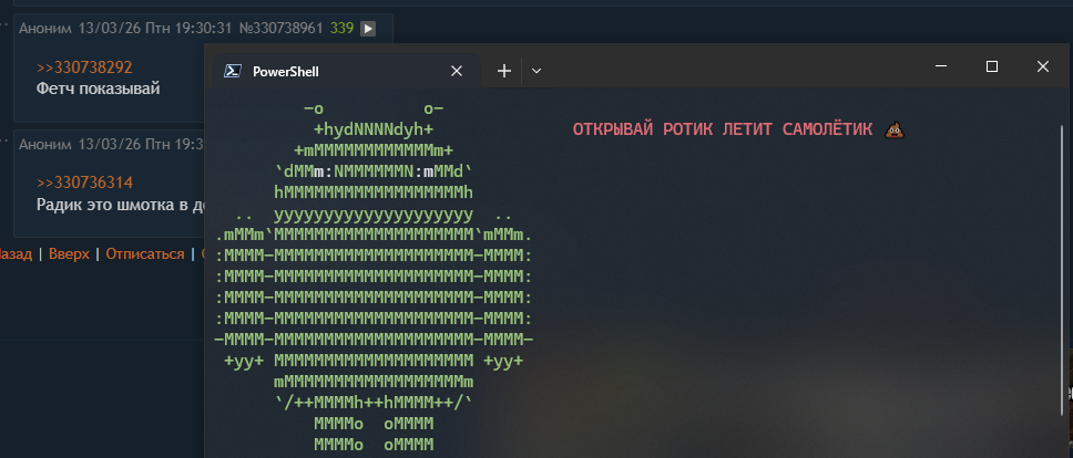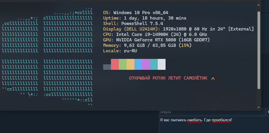 >>330729539 Да, согласен, стыкуется плохо. Приходится писать всякие скрипты для интеграции, пердолить конфиги. Но зато оно все под меня настроено. Все хоткеи мои, все менюшеи тоже. По итогу получается сильно удобнее чем у стокового де. В этом как бы имхо и заключена философия арча - тут никто ничего за меня заранее не настроил. Дефолта часто просто нет - поэтому все нужно делать с нуля, и каждая кнопочка, панелька и менюшка появляется осмысленно если ты конечно не петуч который ведется на все блестящее и поставил omarchy или типа того Минус такого подхода - я отввкаю от стандартных настроек. На любом другом компьютере, например когда жена просит ей что то на винде починить - я как без рук нахуй. Без нугла шагу не могу ступить. Но это один хуй не повод отказывать себе в удобстве.