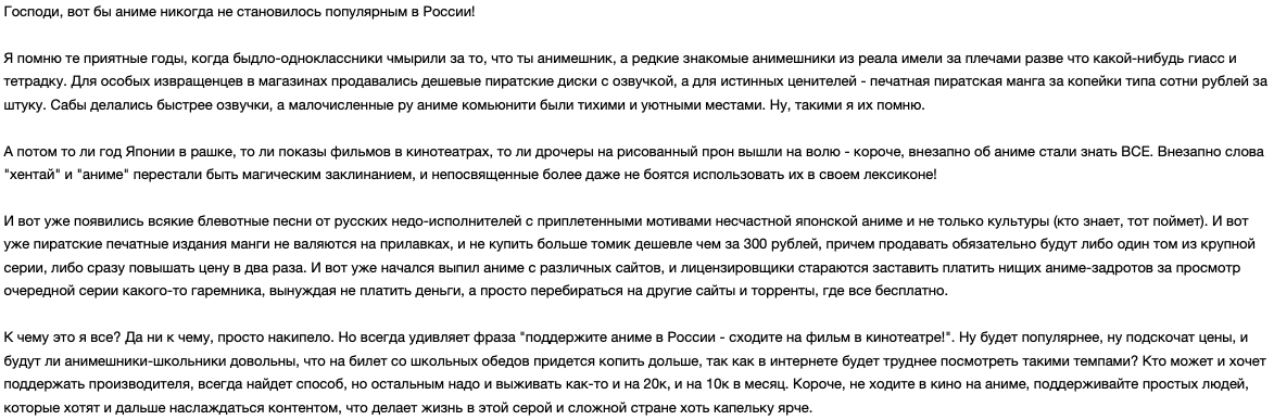 >>330740295 Эх, помню в нулевых думал, как же будет ахуенно, когда нормисы тоже прознают про аниме, и всем миром будем смотреть ахуенные тайтлы. Заберите мое желание обратно, вместе со всякими магическими битвами, пришедшими после его осуществления.