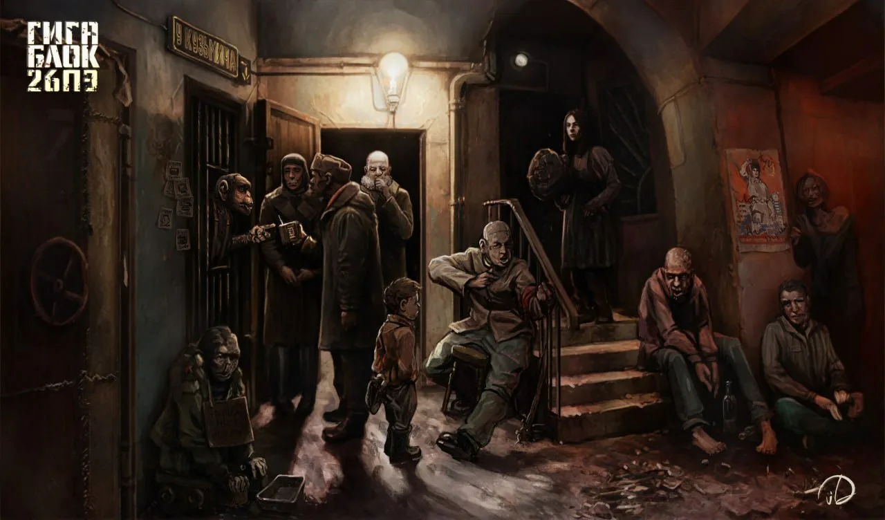 Никаких мутантов, аномалий и прочей фантастической фигни. Хочется нагнать ужаса? Представь целый двор вооруженного, вечно пьяного, с гнилыми зубами и опухшей мордой быдло-скота сразу вспоминаю пасту про город Северск и Вомангеров, чем не крипота?