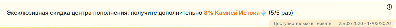 >>6576460 Герой полноценно раскрывается при наличии двух созвездий и его фирменного оружия! В случае необходимости, приобрести Камни Истока со скидкой 5% вы можете через официальный Центр пополнения: https://sdk.hoyoverse.com/payment/genshin/index.html Удачи в крутках!