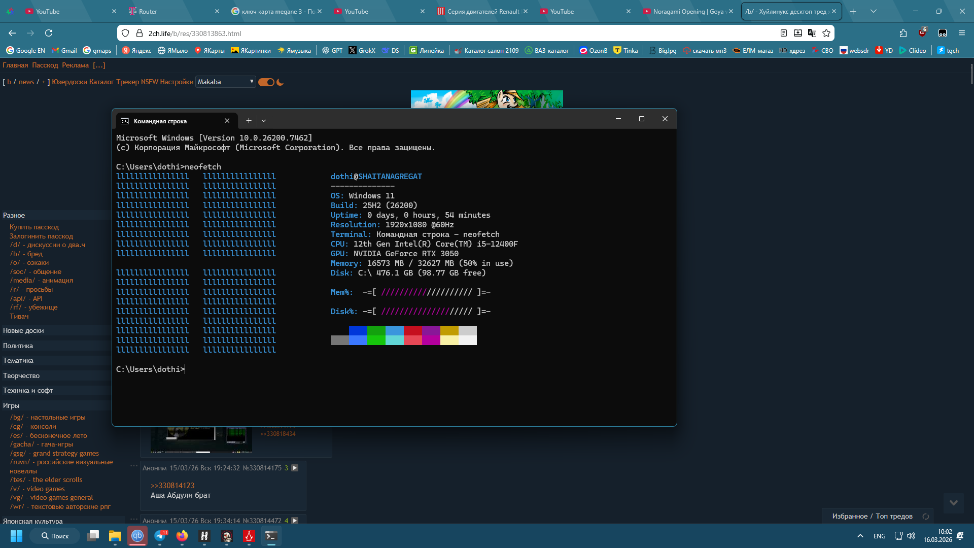 >>330814123 Ну привет, ёбана в рот >>330816359 >всем буквально похуй на венду потому что она просто есть и просто работает Ну мб потому что разнообразие виндовсов в нынешнее время неоч большое. По тому что сборки не отличаются ну прав, кек >>330816486 >Я просто думал линуксоиды неофитч скидывают потому-что у них нет свойств системы как в винде. ну у фетчей еще сразу будет ответ на WM, DE, какие шрифты какая говнотемка, анон еще на аптайм может обратить внимание.
