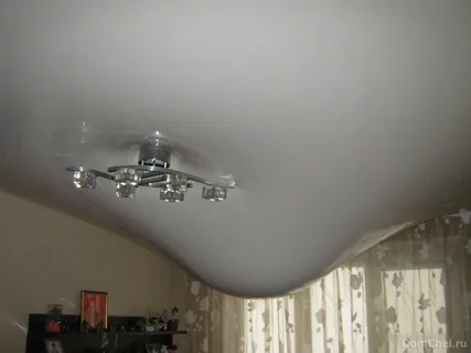 Из-за изгиба плиты углы комнаты изменят геометрию. Пленка, приклеенная к стенам, натянется до предела и лопнет.