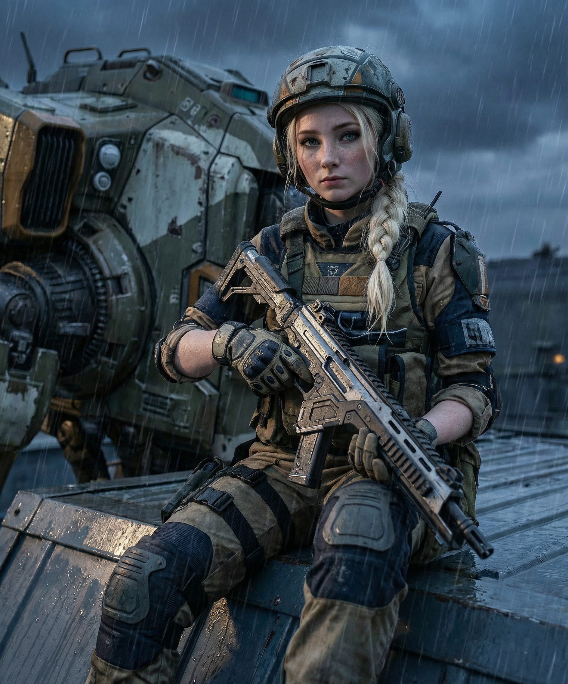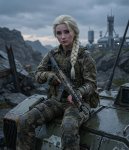 >>330856686 >A cinematic wide-angle low shot from spectator’s viewpoint, gazing from right to left across an outdoor athletic running track arena under sunny golden hour sky. Right side of frame closer to viewer (foreground), left side deeper into the distance (background), shallow depth of field with hyper-sharp foreground focus, subtle blur on midground, softer on background. Leading lines from judge’s tower to starting line. Foreground right side: Scarlett Johansson as Poison Ivy from Arkham Knight game, fiery red hair, barefoot, sitting relaxed on judge’s tower with legs crossed one over the other (bare soles visible), smirking down at the runners. Hyper-detailed face, fingers, bare feet, toes, toenails, legs. Midground left deeper: Blonde Millie Bobby Brown as Power Girl from DC Comics, larger breasts, in stretching warm-up pose — one leg lifted high back grabbed by hand, smirking competitively towards Jenna. Highly detailed face, fingers gripping ankle, bare feet, toenails, athletic legs.Background far left: Jenna Ortega as The Flash, hood and mask off, red tight Flash suit, athletic body with round firm buttocks raised high in sprinter starting pose — one leg kicked back, fingers digging into the track, intense focused gaze forward, surrounded by glowing orange speed force lightning bolts. Detailed face, fingers, bare feet, toes, painted nails.Epic superhero race anticipation, photorealistic, ultra-detailed portraits, fingers, feet, legs, toenails, 4K UHD, cinematic volumetric god rays lighting, dramatic shadows, wide cinematic 2.35:1 aspect ratio, rule of thirds composition with depth, highly detailed textures, realistic anatomy, no distortions.