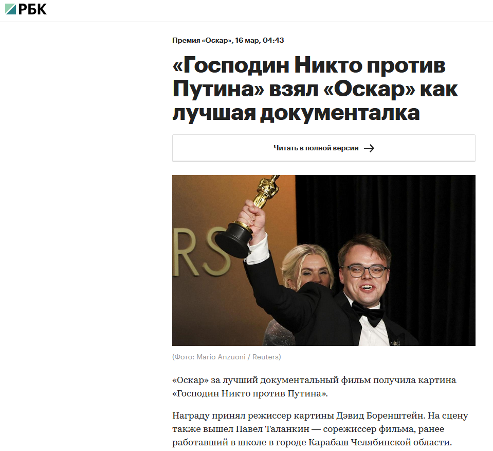 Ну как бы да, ещё 3 года назад ещё живому Навальному оскар дали. И чего, и что.
