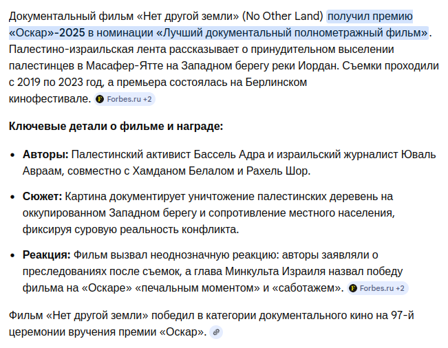 Голливуд давно умер, Оскар никто не смотрит. Только на впечатлительных зумерков может оказать эффект статуэтка, тем более за документалку - самая скучная категория. Вы даже не вспомните за какие фильмы в прошлые годув вручали в этой категории и кому. Ноунейм останется ноунеймом, пойдет теперь бургеры переворачивать, пока не окажется под мостом, ему даже тян не светит.