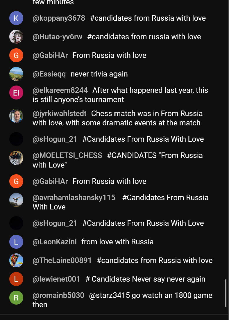 Хуйня, всё куплено, делают ходы которые им озвучивают в микронаушник. Всё желание пропало теперь за турниром следить. Вообще не удивлен что аж целых 3 из 4 или 75% вышло результативных партий в первом расчиловочном туре. Все как ужаленные понеслись в атаку с шашками наголо. В партии Пипясенко конечно же качели нам организовали, сначала легкий дебютный перевесик затем посыпался на ровном месте в пользу молодого и амбициозного. Это и без того на моем любительском уровне смотреть 5-6 часовые трансляции не имеет смысла, а когда такая галимая заказуха вообще блять говной воняет такое впитывать циркачество