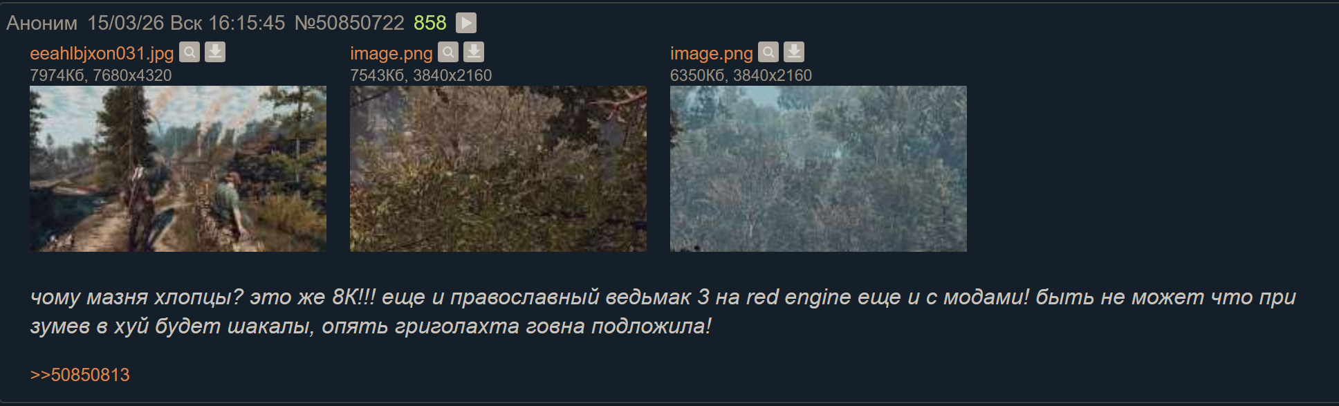 >>50857983 Самое забавное, что пик из Аномали это простой скриншот видео с ютуба, который по заверениям клавиатурного чухана безбожно сжимает шакалов. А пик из Калкера2 - это намоленный статичный 4К снимок(знимок) сделанный лично клавиатурным чуханом в качестве пруфа >>50850537 →
