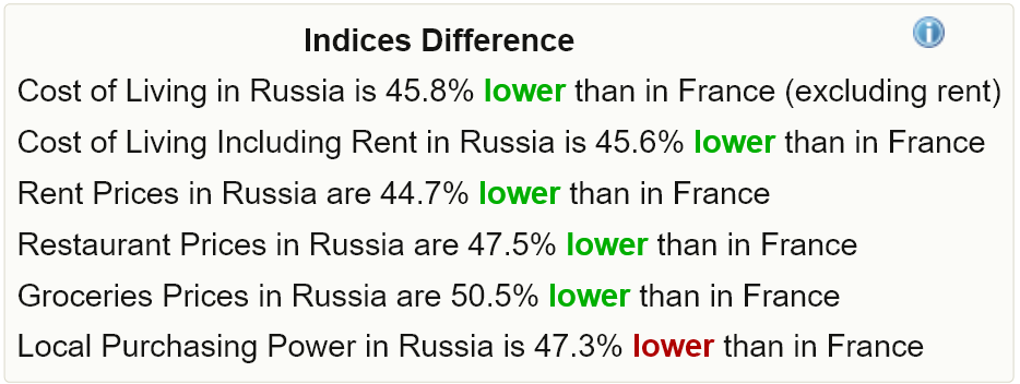 >>330852284 Легко. Local Purchasing Power in Russia is 47.3% lower than in France Франция по ППС в 2 раза обгоняет Россию, а штраф выше в 4 раза. Это значит что штраф за оскорбление президента средний россиянин перенесёт в 2 раза легче, чем средний француз. Только выиграли.