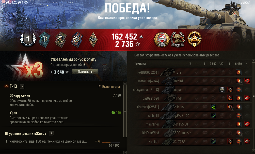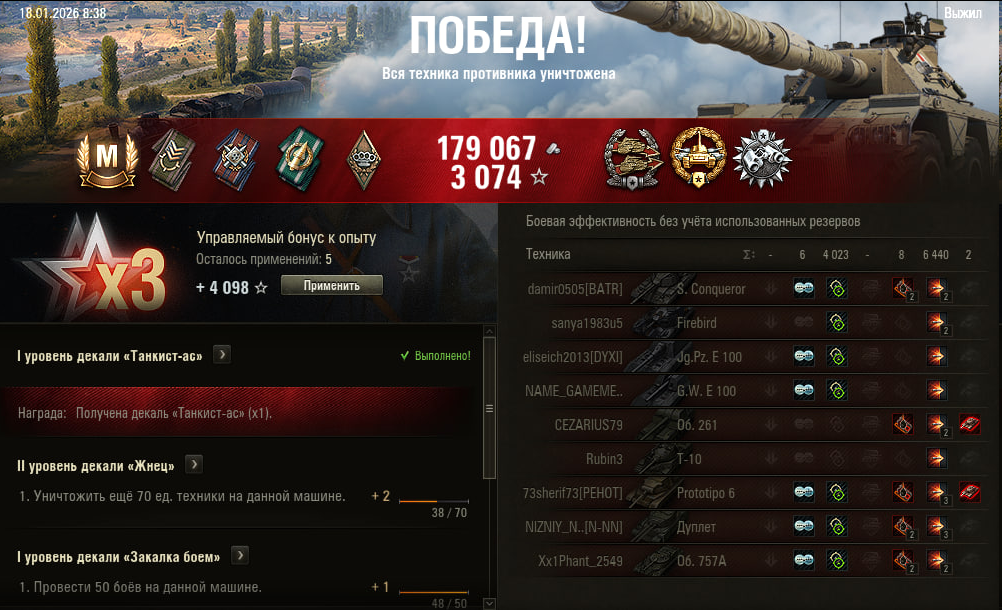 Вот это, думаю, мой максимум в текущем сезоне. Какой-то нереальный винстрик в последние два дня вышел, но навряд ли так дальше будет Эх, доделаю два последних квеста в натиске, и нахуй танки до нового сезона!