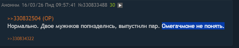 Понимаешь теперь, почему девочки из класса смеются, когда буллят омежку, но если омежка даёт отпор - кричат, что он ебанулся?