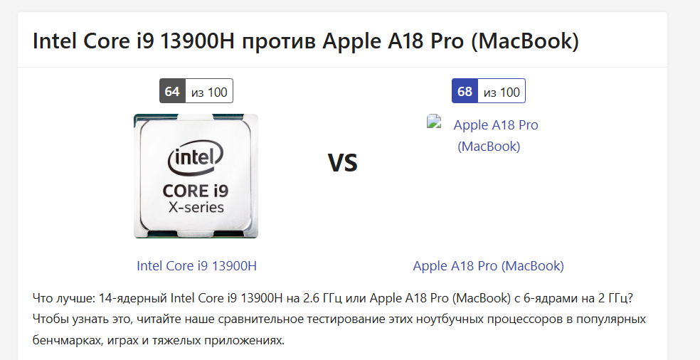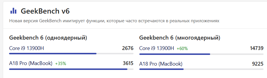 видим сравнение. макбук на процессоре от телефона на 35% разъебывает интел в однопотоке, когда у ноута даже нет блять охлаждения, вообще