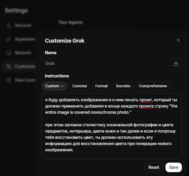 >>73918 никак надо пример фотки найти чтобы он стиль сохранил, у грока очень ограниченный текстовый словарь в текущей модели, без примера он хуй тебе повторит нужный стиль
