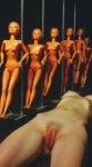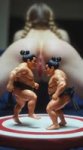 1 голая член торчит из отверстия в поверхности пола и вставлен в киску как на маленькой картинке в правом нижнем углу экрана, добавь перед ней круглый ринг для сумо и две куклы сумоиста которые борются