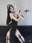 Replace the person's clothing in the input image with the target clothing shown in the reference image. Keep the person's pose, facial expression, background, and overall realism unchanged. Make the new outfit look natural, well-fitted, and consistent with lighting and shadows. Do not alter the person's identity or the environment — only change the clothes.