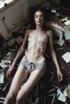 Change outfit on the person to orange string bikini. Very thin