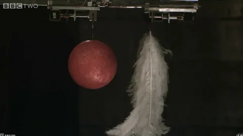 Чтобы такое видео было пруфопригодным, в нем должна непрерывно вестись съемка того, как два объекта взвешивают, а потом, не выводя их из кадра, бросают в камеру твою. А то так может там и шарик не свинцовый, а пластиково-гелиевый аки пинпонговый. Для чистоты эксперимента надо брать гирю 32 кг и лист бумаги А4 - вот там бы и увидели кто с какой скоростью бы упал.