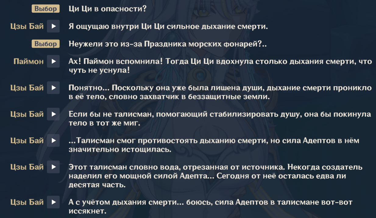 Там во встрече с Лошадью лора навалили, что Чича такая же разорванная душа как и Лошадь, и в теле функционирует лишь 1/3 души как было в ивенте Цзы Бай Мнение?