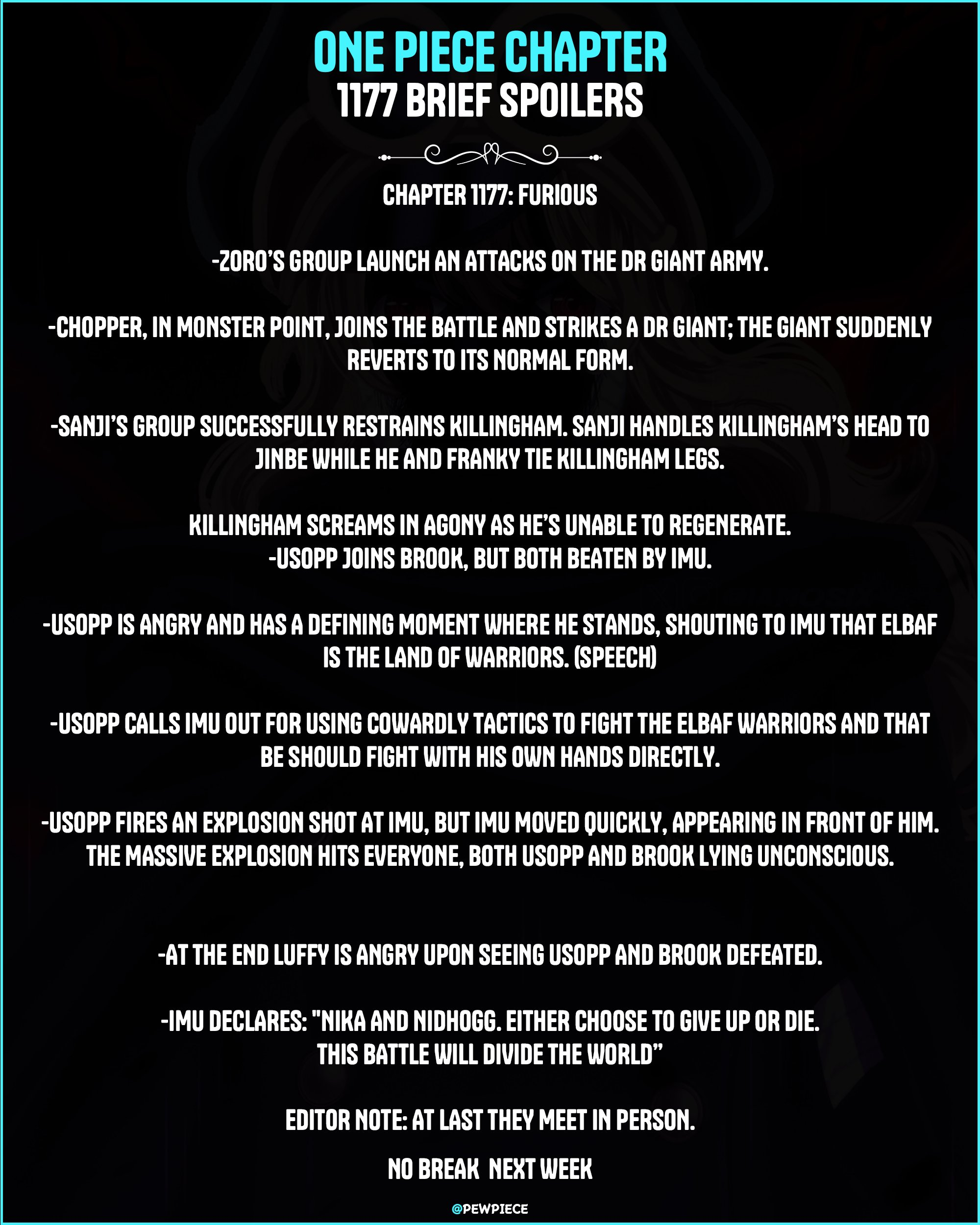 Ода тоже согласен, что сцена решение проблемы Лабуна в сериале лучше, чем в манге, где Луффи просто кулаками кита запиздил. Хотелось бы, чтобы в аниме адаптации от Вит, если она выйдет, а не будет отменена, Луффи тоже спел киту, а не пиздил его.