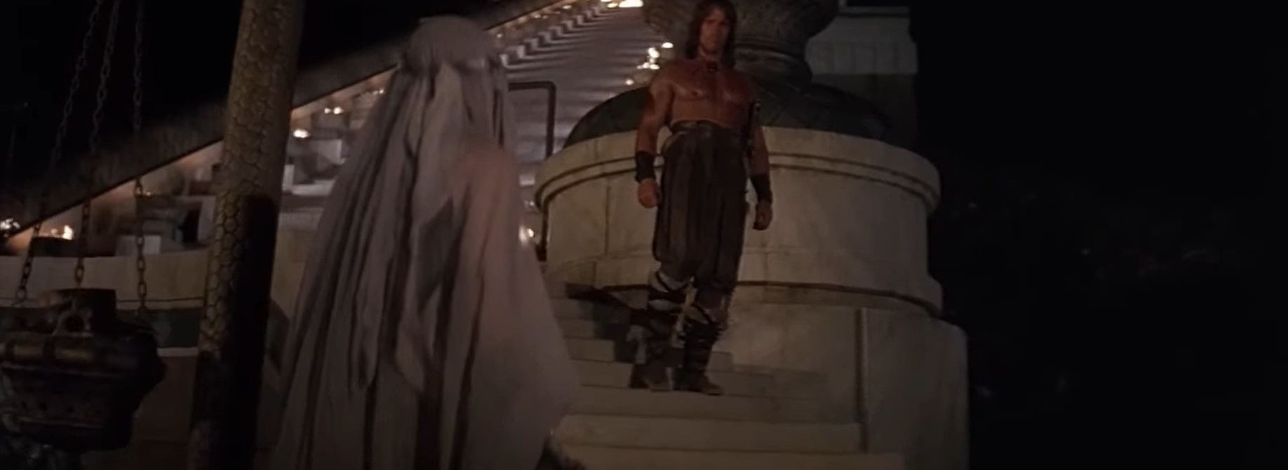 Мех. История не примитивная. Персонажи - ок. Шварц - некудышный актер, но хоть его потуги в игру веселят. Почему Конана внезапно отпустили на волю и зачем нужна была сцена с ведьмой - я не понял. В целом достаточно скучное зрелище. Я думаю взлетело среди гомиков. Даже из того же времени можно фэнтези поинтереснее накопать.