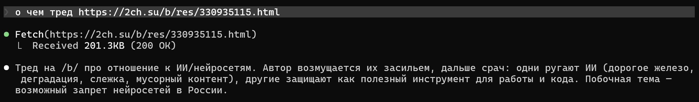 Кроме обычных "сколько время" и подобных что любой браузер может, гпт не умеет ничего. Уже сотню раз доказаннно было, а защитнички "ну эээ пук". Ну давай докажи, сейчас скажешь ыыы пук и опять безрезультатно. Давай успокаивай себя.