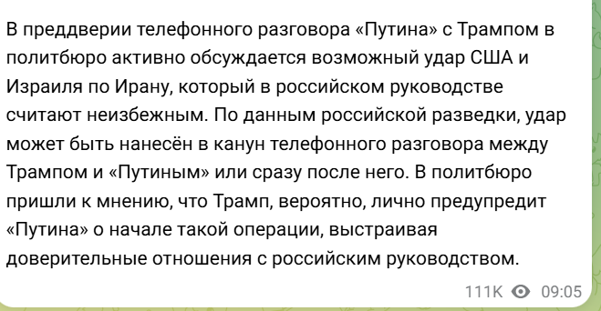 Как утверждает израильская пресса, американцев уже предупредили о том, что война на Ближнем Востоке будет в любом случае, если Иран не откажется от своих программ, а он не откажется. Так что удары по ключевым военным объектам и производствам уже готовятся.