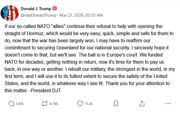 А вообще может Трамп прекрасно понимал что никто не впишется за движуху, но знал что если затянуть движуху это заставит союзников все таки вписаться. А то не будет еды и нефти