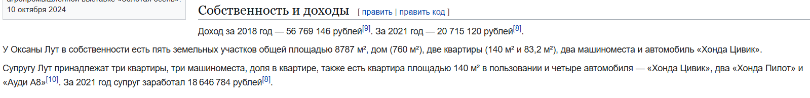 >>62182616 >Это борьба с коррупцией. Тоже поддерживаю борьбу с коррупцией, как настоящий патриот России. Не подскажешь, когда посадят министра сельского хозяйства Оксану Лут за коррупцию? А то у неё серёжки за 1.5 млн рублей и часики за 7.5 млн рублей. У неё есть ещё двое часиков по 3 млн каждые. И это я ещё про недвижку в Мааскве не сказал.