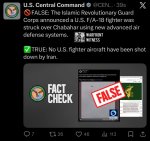 >>62230880 Вероятность того, что F/A-18 был подбит из ПЗРК именно одним из ополченцев "басидж" действительно достаточно высокая. КСИР сразу в начале войны провел значительную мобилизацию ополченцев, речь может идти о сотнях тысяч человек по всей стране. "Басиджам" было выдано различное вооружение, от автоматов и пулеметов до ПЗРК. На фото как раз один из "басиджей" с ПЗРК Misagh-2.