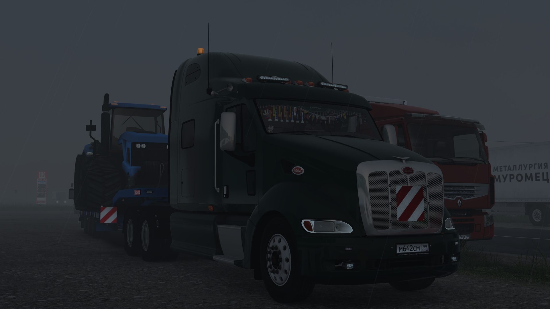 >>50821475 Всё-таки срочные доставки в ЕТС с негабаритом иногда та ещё морока. Днём потерял кучу времени в пробках на многочисленных ремонтах, пришлось вставать на отдых, чтобы вписаться в РТО, а потом в полночь стартовать, чтобы уложиться в срок. Тьма за окном потихоньку рассеивалась, и вот уже начал за спиной розоветь восток, на трассе не было ни души, а я тем временем летел мимо сонных деревень, пусть и немного быстрее, чем обычно. В итоге трактор был доставлен на ферму, и, несмотря на раннее утро, достаточно быстро выгружен.