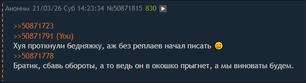 >>50871723 >>50871791 Хуя проткнули бедняжку, аж без реплаев начал писать 🤭 >>50871778 Братик, сбавь обороты, а то ведь он в окошко прыгнет, а мы виноваты будем.