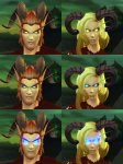 У тебя первый пик - криво спижженые с бк/лича/каты ассеты и ещё более уебищно натянутые на клиент вонэллы. Второй пик то же самое, разве что поменьше исходников более поздних экспаншенов и больше трижды переваренного ванильного кала. Третий пик тоже уже разжевали. Они просто берут прически или цвет волос одной расы и натягивают на другую. Конкретно, у отрёкшейся конский хвост хумана, второй причесон с выбритым виском - дренейский, в углу у дворфа блондина тоже хуманская причёска.