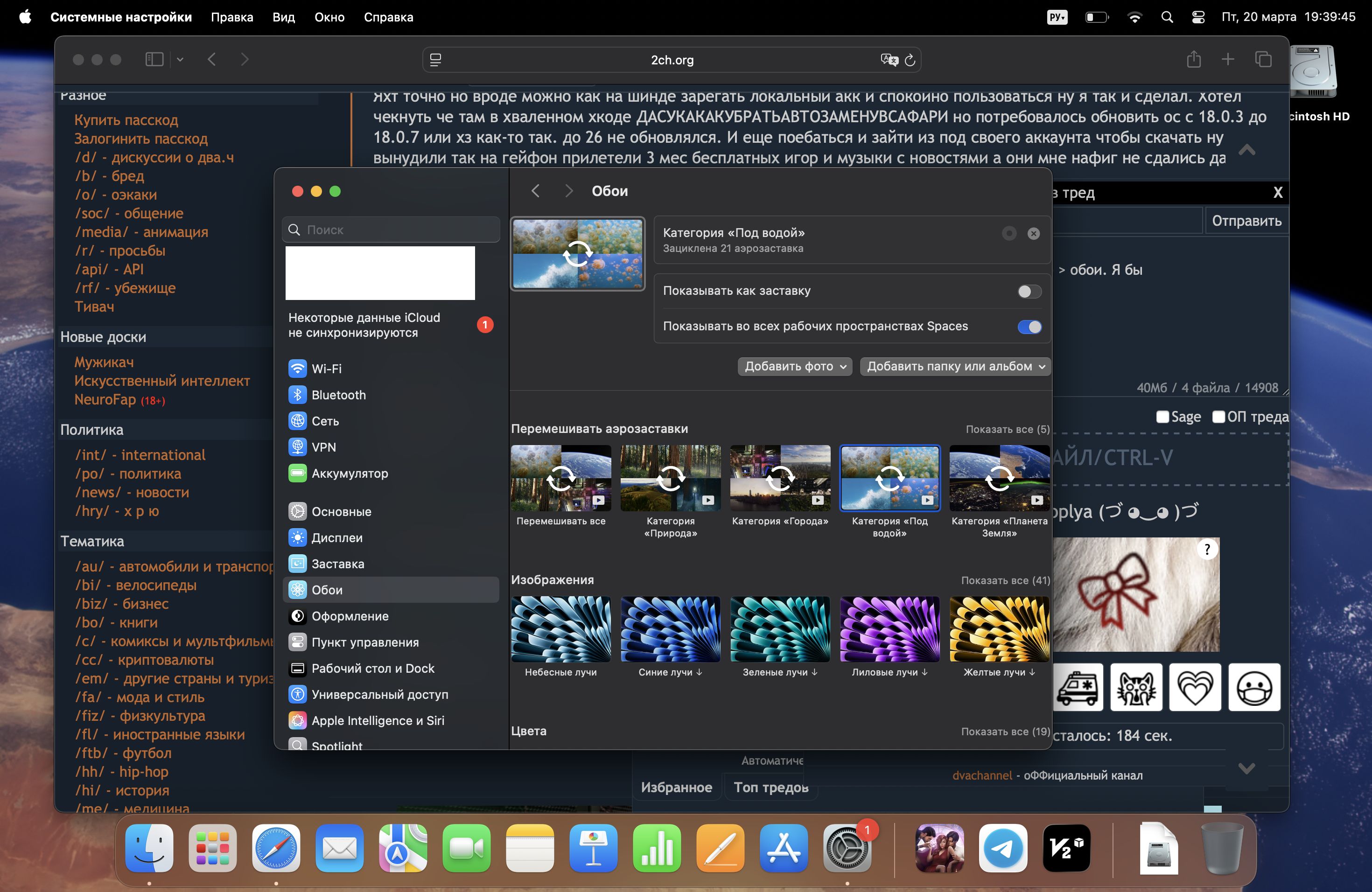 Кстати, вот все пиздели про красивые обои, а они тут на маке скачиваются по 10-минут нахуй я в рот ебал хуйню сделали. И при этом дефолт нельзя поставить меняться скажем бы раз в 1 минуту как на линухе