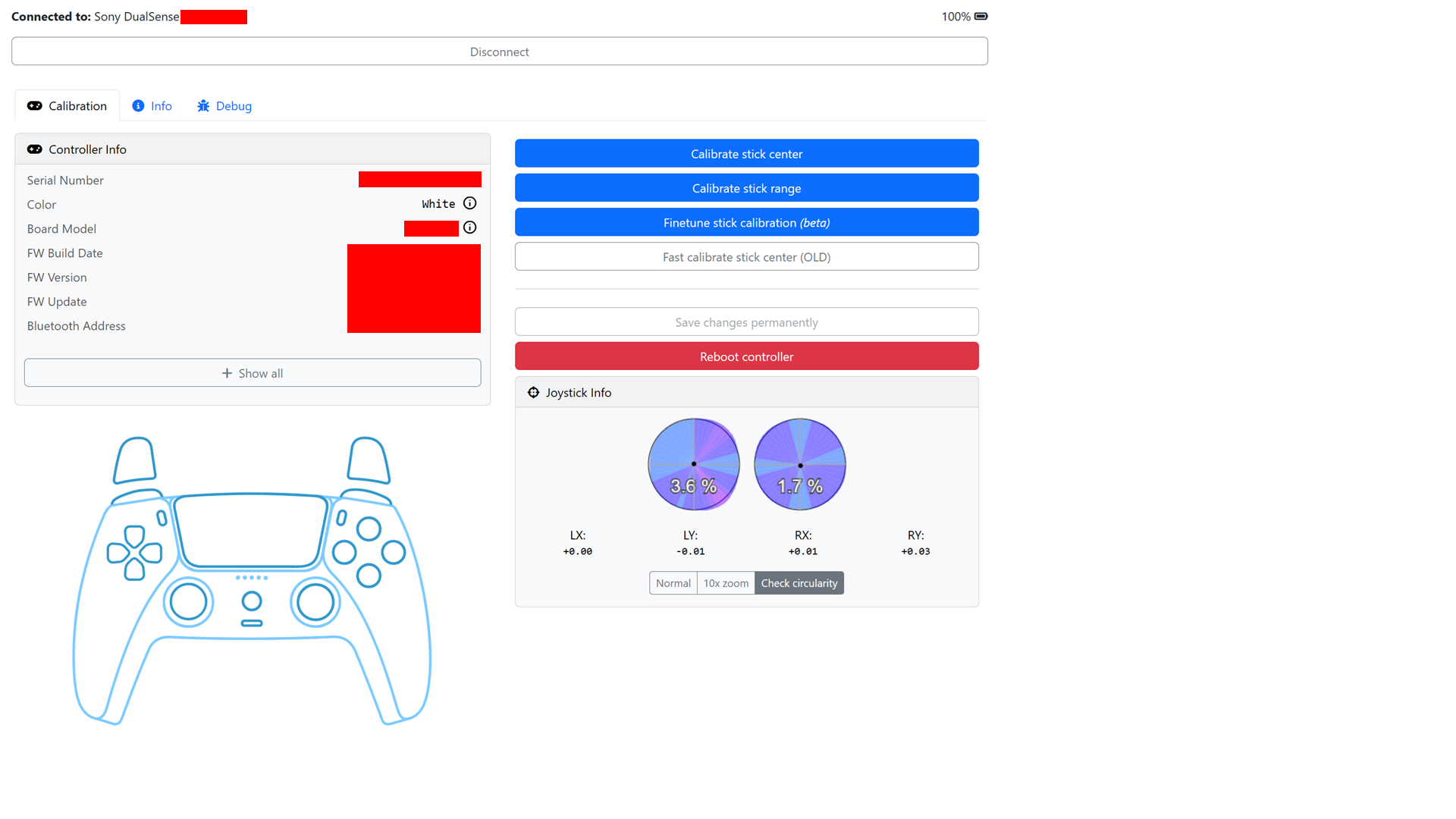 можно ли тут откалибровать центр стика? например AXIS 2 в покое показывает значения 0.01749 0.02609, то есть нужна дедзона почти 3%, а если бы я мог откалибровать так, чтобы центр был в 0.02179, а дрифты были бы между -0.0043 до 0.0043, то дедзона стала бы меньше половины процента
