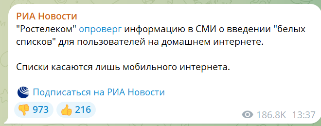 За всё время движухи до моей мухосрани не дотянулись белые списки даже на мобильном интеренете. А на не которых домашних провайдерах ютуб, ватсап, телега без впн работают