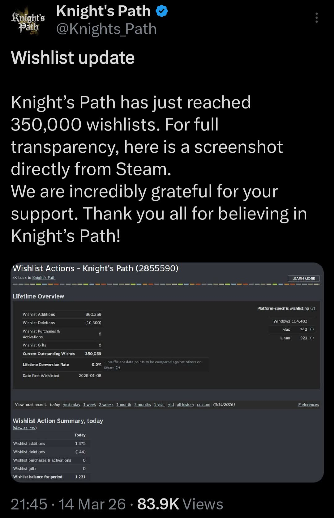 >>10183318 Почему-то все путают название с фильмом Хита Леджера. Оно называется Knight's Path. Именно на эту игру наехали разрабы 1348 Ex Voto в Твиттере.