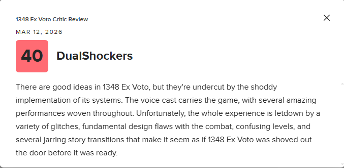 Вообще не слышал воя обиженный барнаульцев по игре, заинтересовала сеттингом и обещаниями годного фехтования. А тут оказывается аж война была. Поиграл, ничего не зная об игре. Оценка - пойдет на пару вечеров. Какой-то яркой повестки в игре нет, нигде даже явной лесбийской линии нет, создается впечатление, что они просто близкие подруги. Хз где там повестка, мб в страшных бабах, ну епта, посмотрите как выглядели бабы до косметики, инстаграмма и фильтров фотошопа - примерно такие и были. Особенно что ГГ в красавицы и не метит, вспомните Бриену Тарт у Мартина - это тоже повестка? Сама игра средняк: мир и архитектура красивые, но графон не ровный где-то прямо красота, где-то хуита. Боевка приятная но типов врагов и их паттернов поведения мало. Вообще все какое-то куцое - нищее меню, нищая прокачка, нищие враги. За косарь пойдет если нравится сеттинг и бои на мечах в духе хеллблейда. Годнотой или прямо лютым говном бы не назвал - это именно что средняк, проходняк.