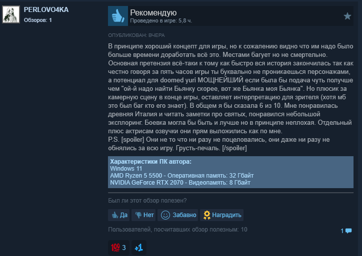 >>10174762 (OP) Завтра скачаю и попробую имхо мне кажется хейт какой-то через чур излишний, че всех так порвало. Нишевая игра с бюджетом смуты если не меньше про лесбух ну и че. Лесбухи вобще база так то. Ток из-за лесбух и хочу заценить.